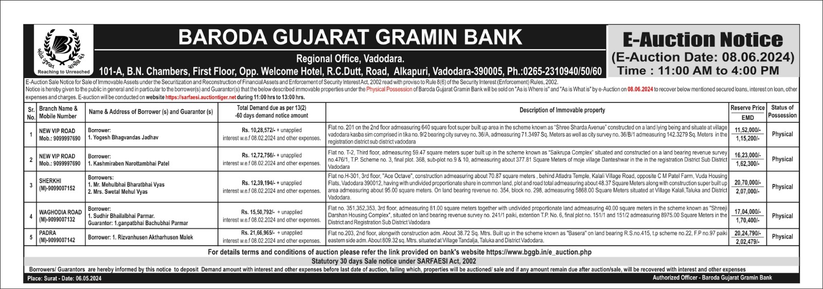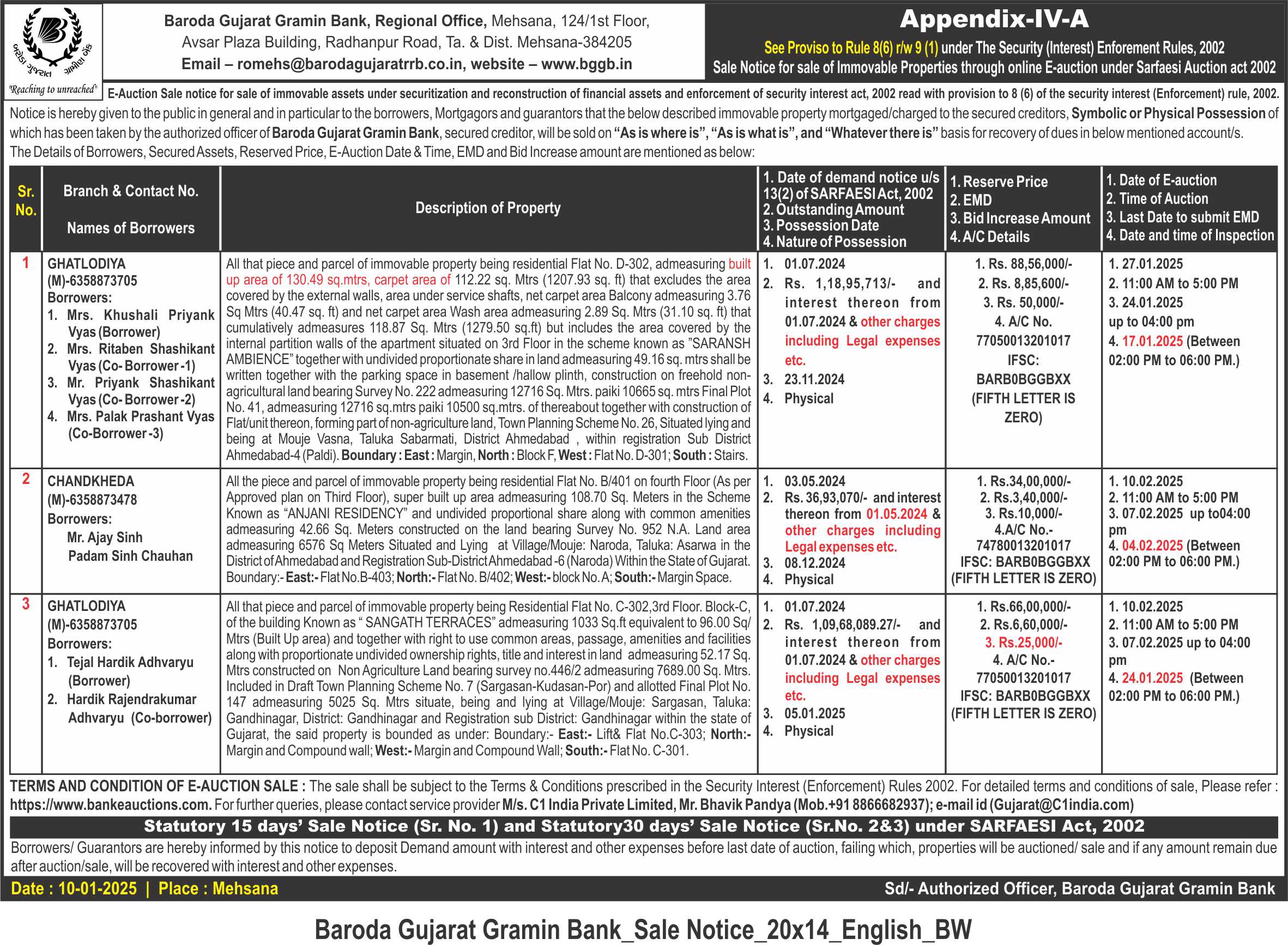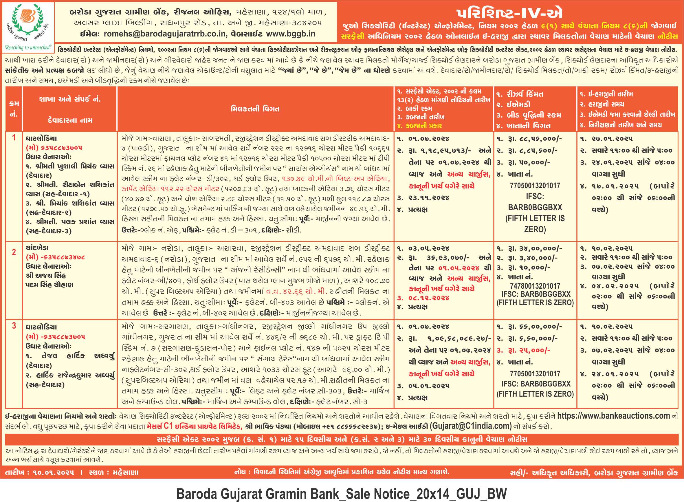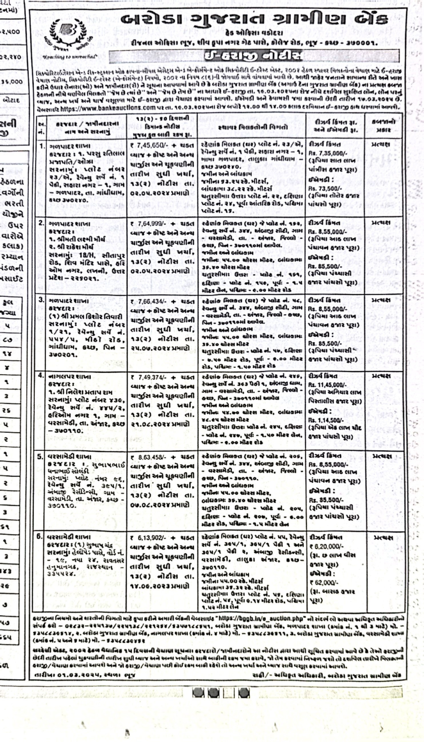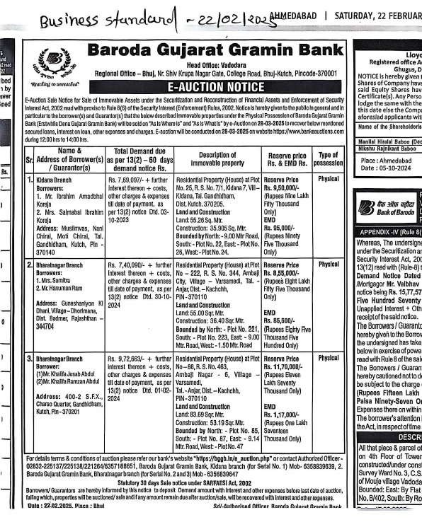 E-Auction Notice for Sale of Immovable Properties - Bhavnagar Region Branches |