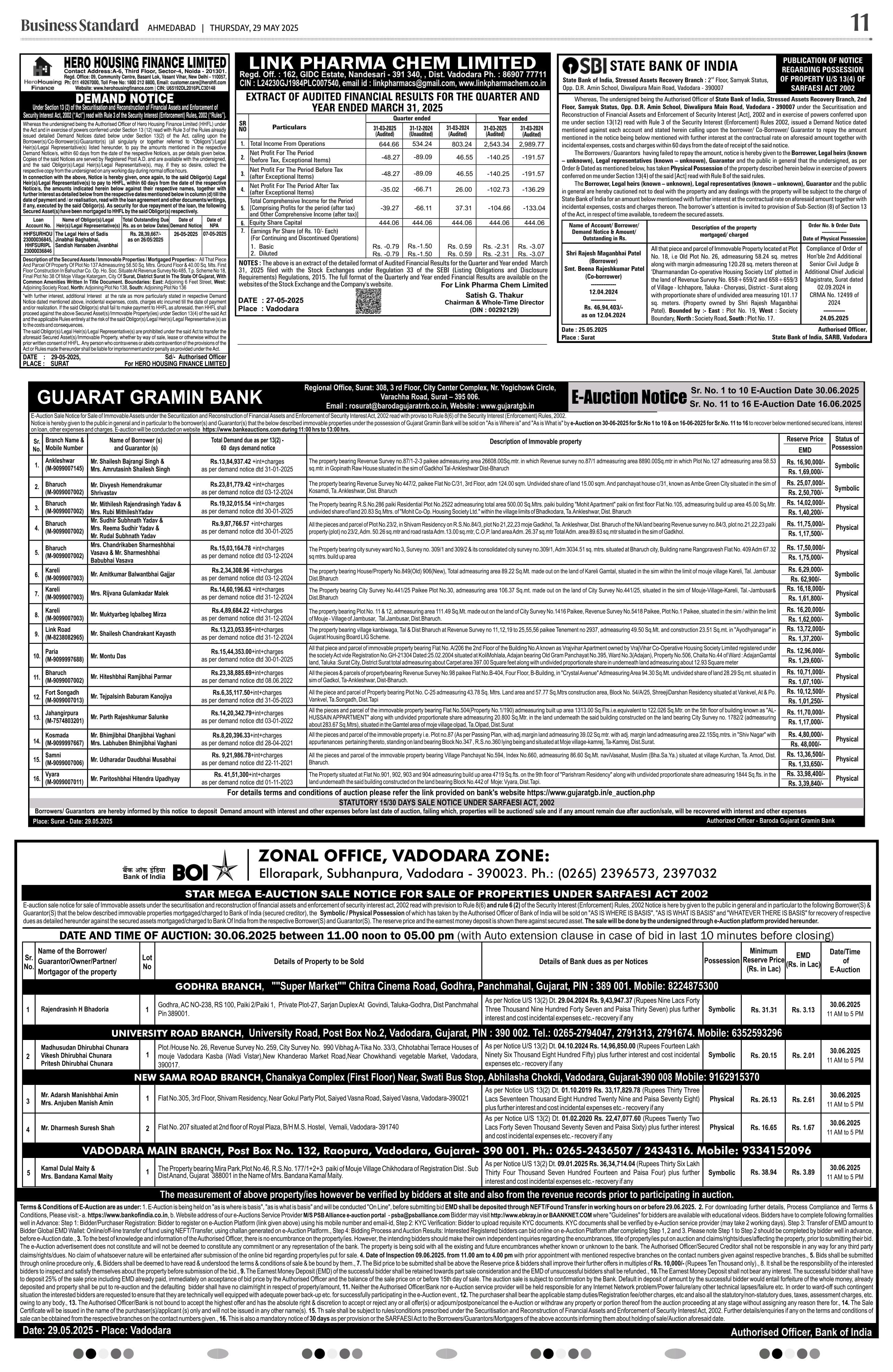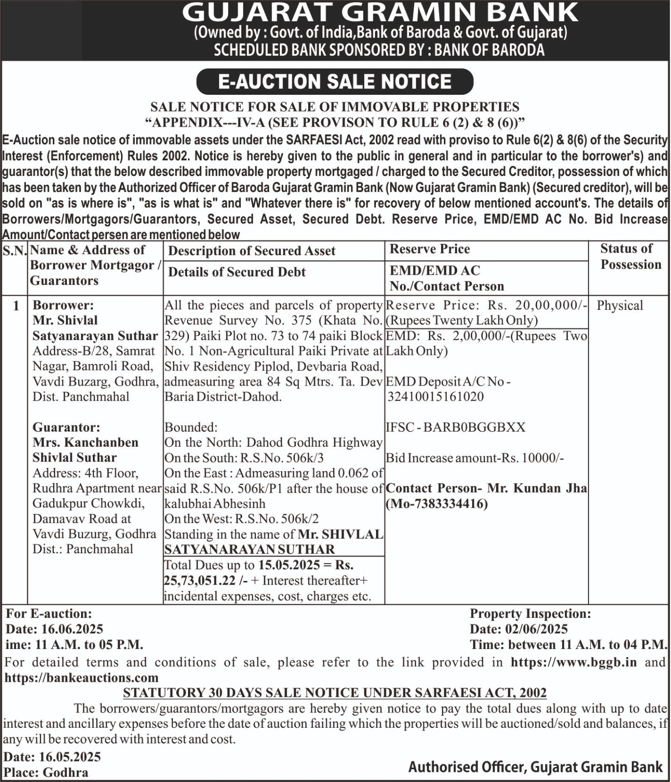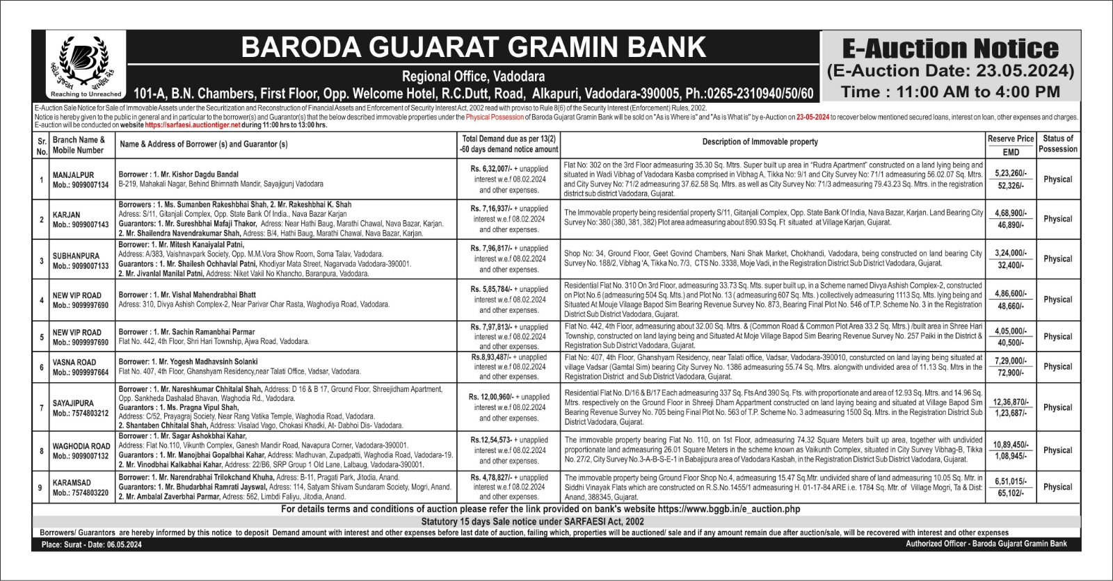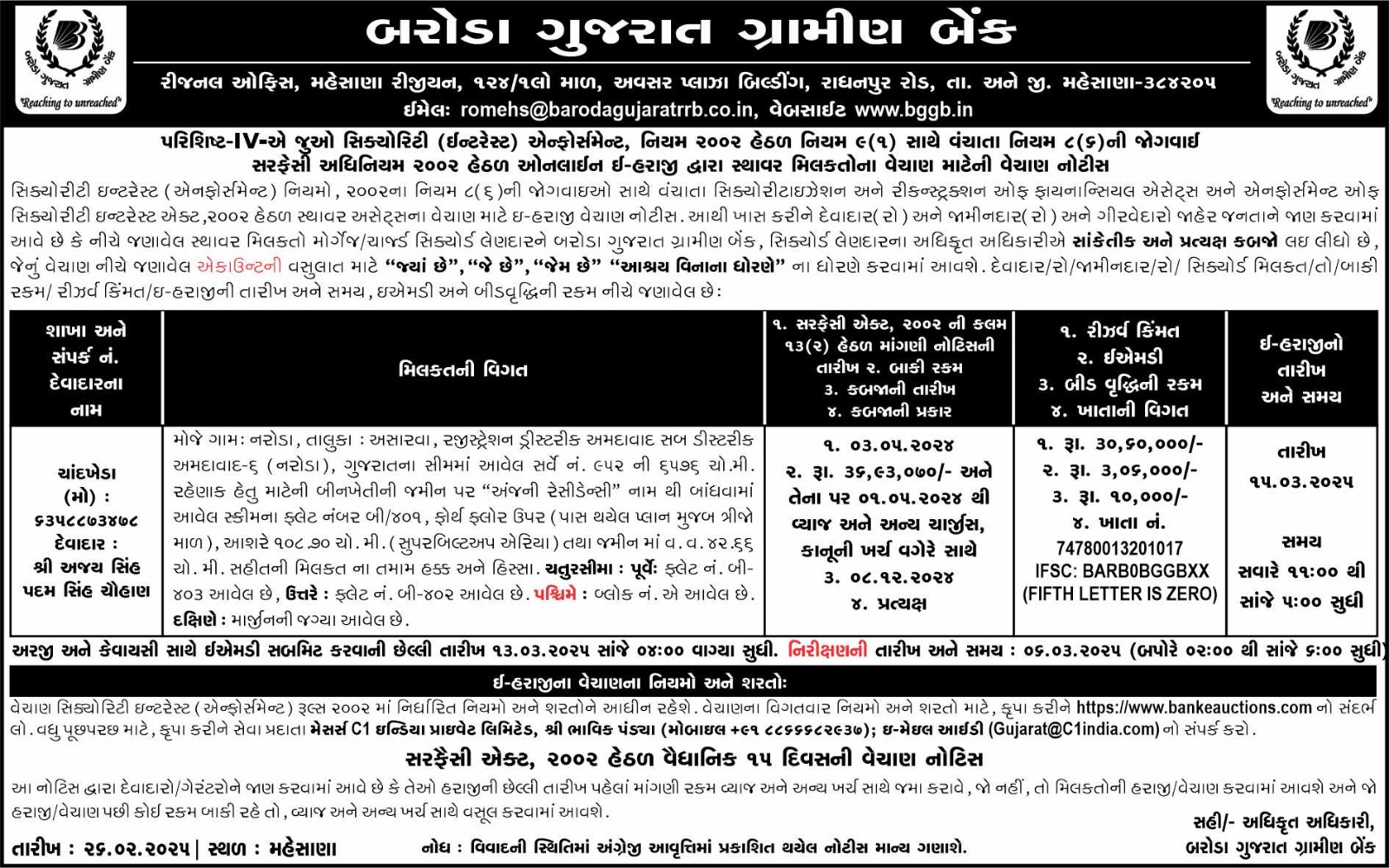 E-Auction Notice for Sale of Immovable Properties - Bhavnagar Region Branches |