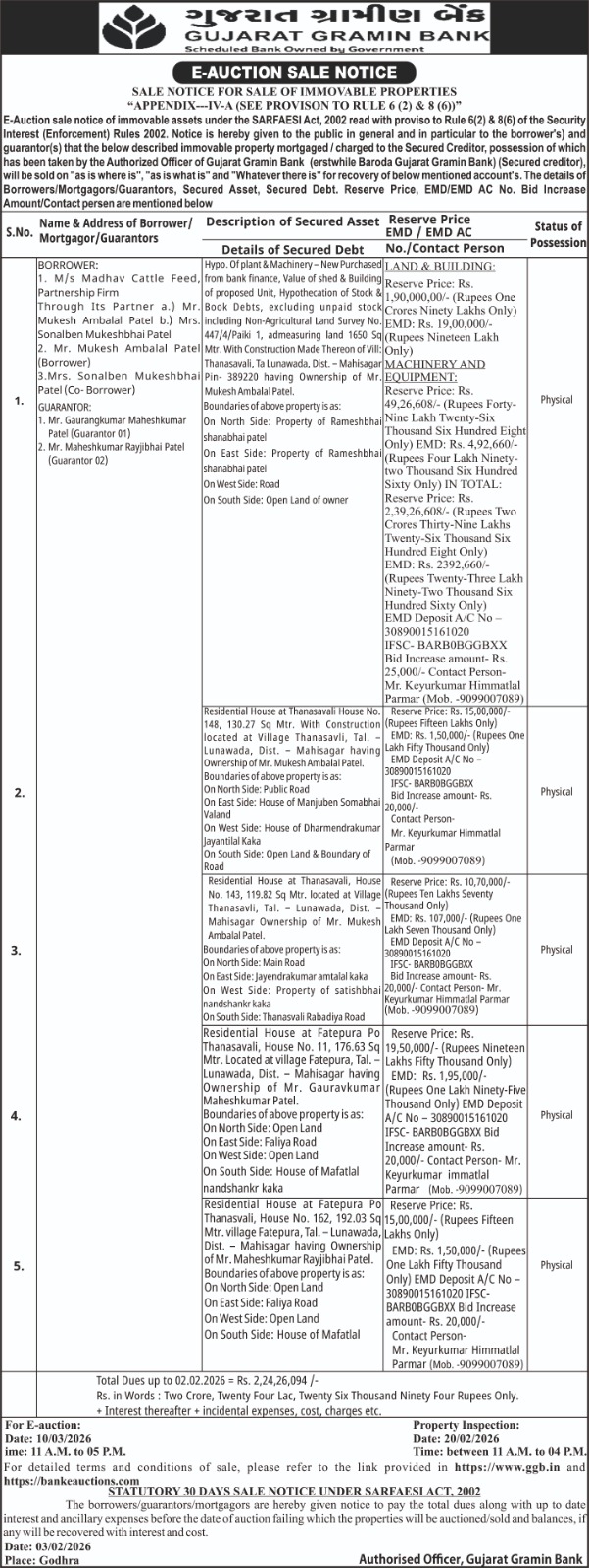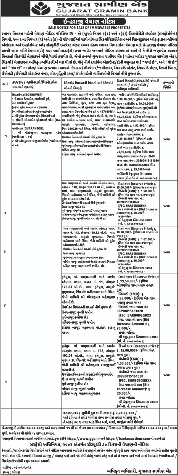 E-Auction Notice for Sale of Immovable Properties - Bhavnagar Region Branches |